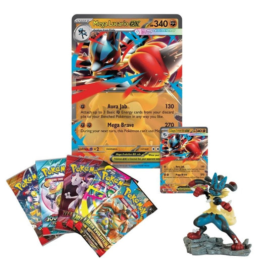 מכירה מוקדמת: מארז קלפי פוקימון מגה לוקאריו אי אקס פיגר קולקשן | Pokemon: Mega Lucario Ex Figure Collection