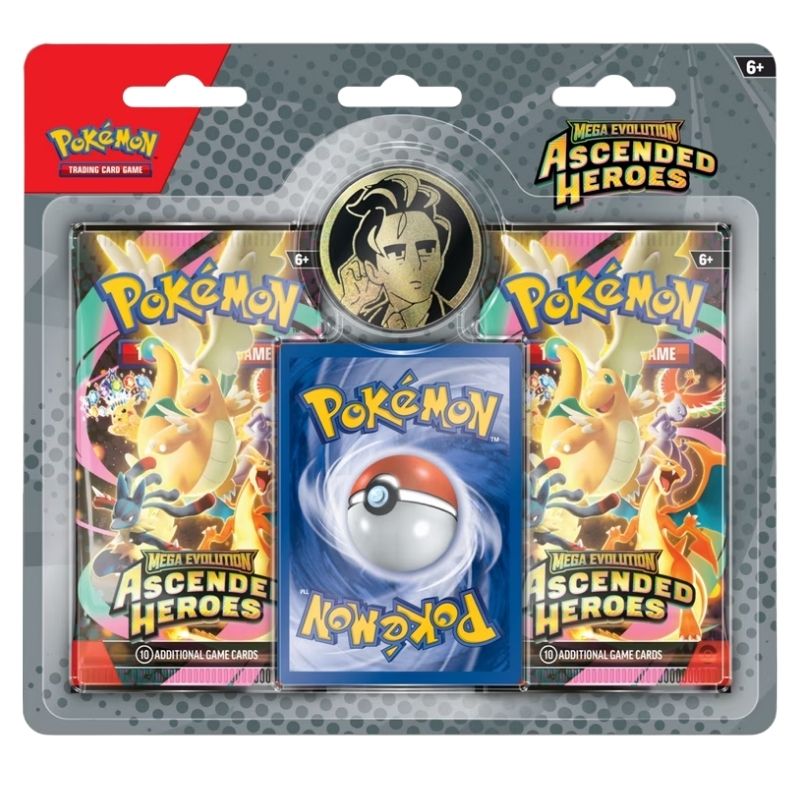 - מכיל 2 חבילות קלפי פוקימון מהסט מהסט Mega Evolution: Ascended Heroes (כל חבילת בוסטר של קלפי פוקימון כוללת 10 קלפים רנדומליים מהסט וקוד למשחק הקלפים TCG באונליין)
