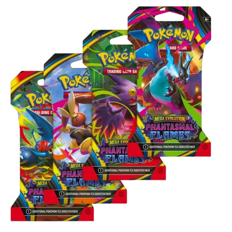מכירה מוקדמת: חבילת קלפי פוקימון מוסלבת - מגה אוולושנס: פנטסמל פליימס (מתייחס ליחידה אחת) | Pokemon: One Sleeved Booster Pack - Mega Evolution: Phantasmal Flames