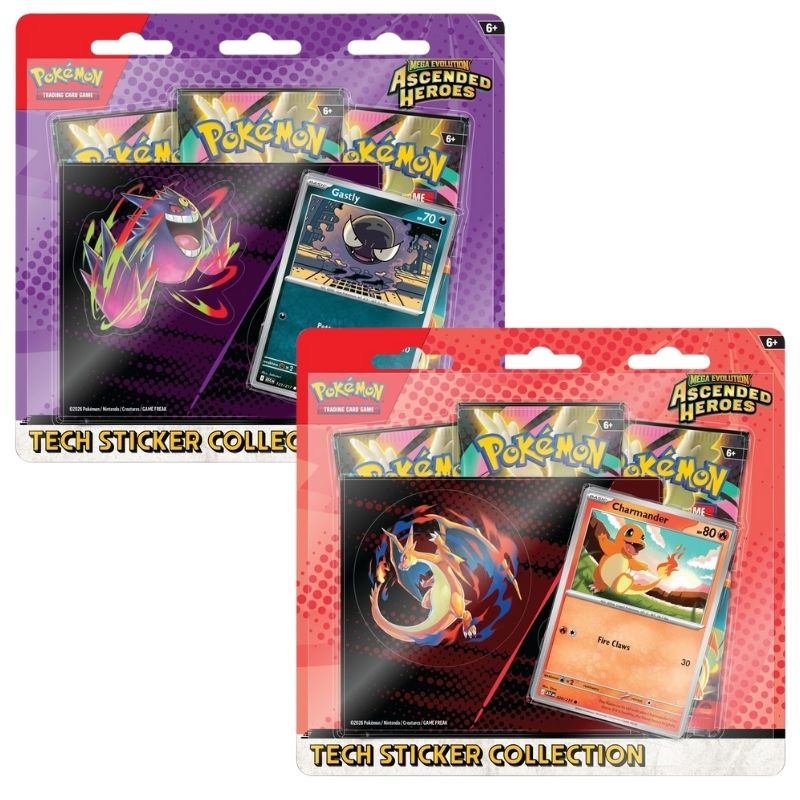 מארז פוקימון בליסטר מדבקות עם 3 חבילות - מגה אוולושן: אסנדד הירוס | Pokemon: Tech Sticker Collection - Mega Evolution: Ascended Heroes
